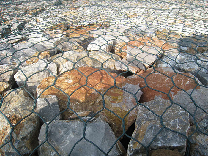 覆塑雷諾護(hù)墊也叫覆塑石籠護(hù)墊,覆塑格賓護(hù)墊,是指由機(jī)編雙絞合六邊形金屬網(wǎng)面構(gòu)成的厚度遠(yuǎn)小于長度和寬度的墊形工程構(gòu)件。覆塑雷諾護(hù)墊中裝入塊石等填充料后連接成一體,成為主要用于水利堤防、岸坡、海曼等的防沖刷結(jié)構(gòu),具有柔性、對地基適應(yīng)性的優(yōu)點(diǎn)。